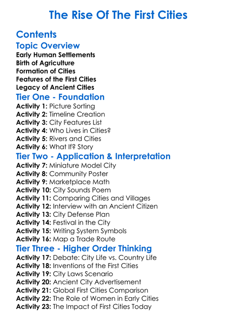 The Rise Of The First Cities Worksheet Activity Booklet
