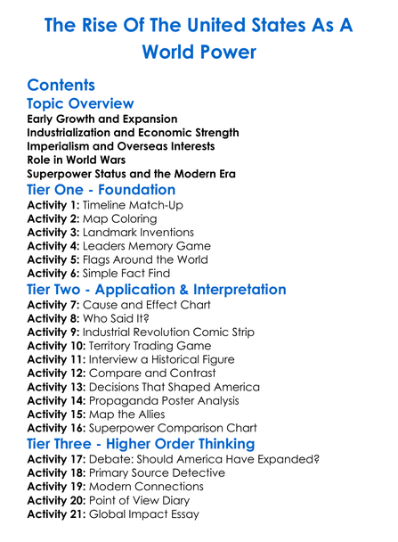 The Rise Of The United States As A World Power Worksheet Activity Booklet