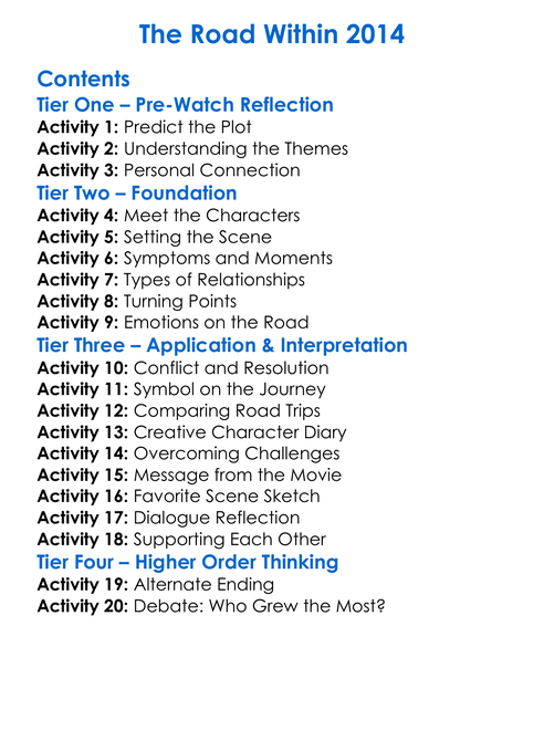 The Road Within 2014 Worksheet Activity Booklet