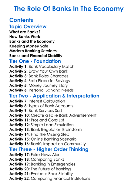 The Role Of Banks In The Economy Worksheet Activity Booklet
