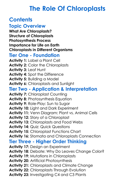 The Role Of Chloroplasts Worksheet Activity Booklet