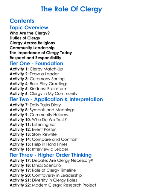The Role Of Clergy Worksheet Activity Booklet