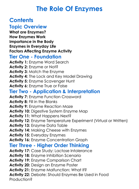 The Role Of Enzymes Worksheet Activity Booklet