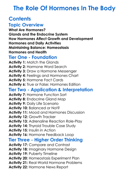 The Role Of Hormones In The Body Worksheet Activity Booklet