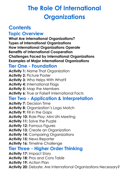The Role Of International Organizations Worksheet Activity Booklet