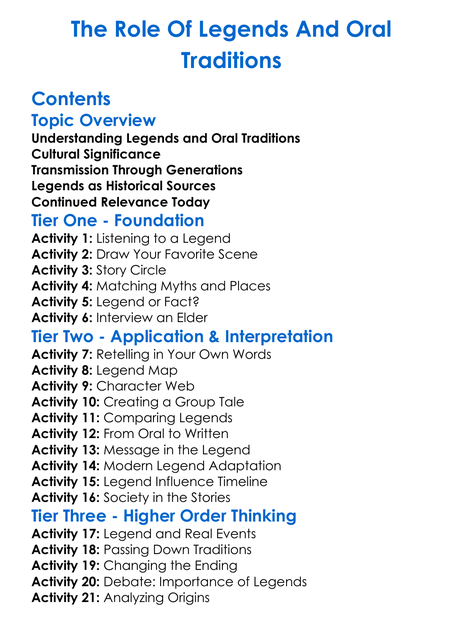 The Role Of Legends And Oral Traditions Worksheet Activity Booklet