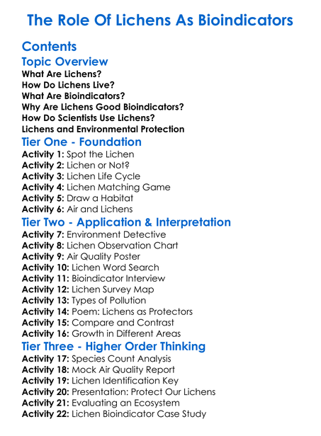 The Role Of Lichens As Bioindicators Worksheet Activity Booklet