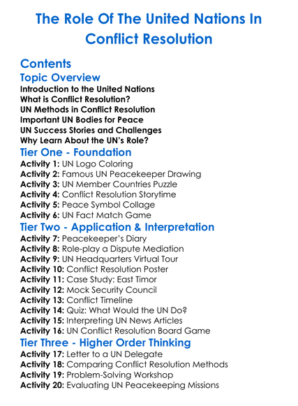 The Role Of The United Nations In Conflict Resolution Worksheet Activity Booklet