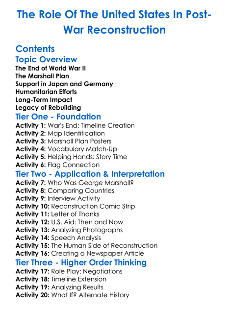 The Role Of The United States In Post-War Reconstruction Worksheet Activity Booklet