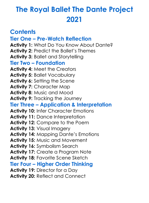 The Royal Ballet The Dante Project 2021 Worksheet Activity Booklet