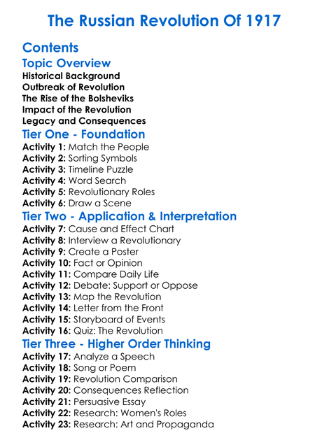 The Russian Revolution Of 1917 Worksheet Activity Booklet