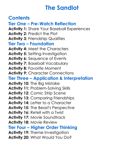 The Sandlot Worksheet Activity Booklet