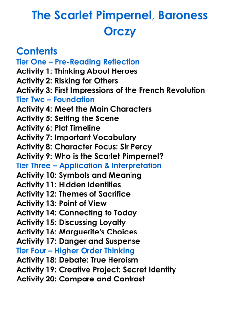 The Scarlet Pimpernel Baroness Orczy Worksheet Activity Booklet