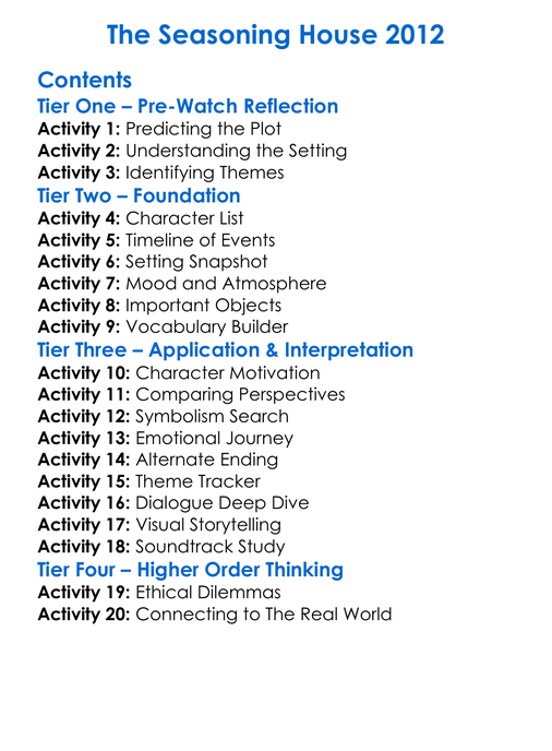 The Seasoning House 2012 Worksheet Activity Booklet