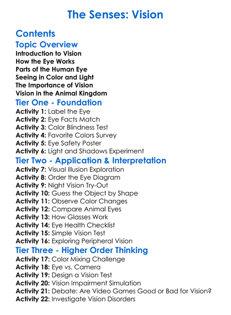 The Senses Vision Worksheet Activity Booklet