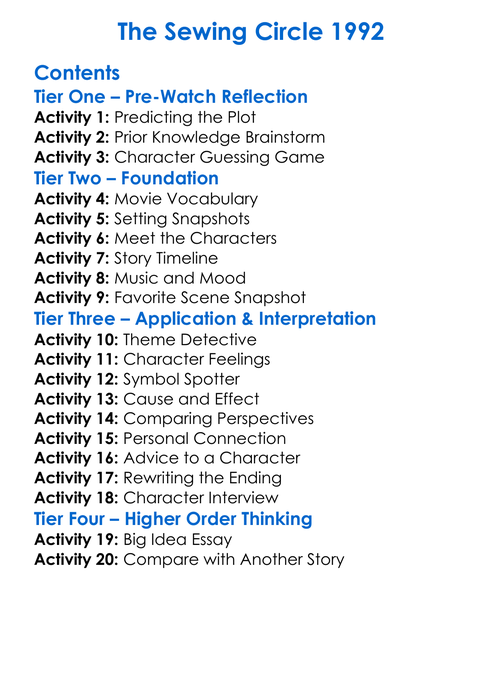 The Sewing Circle 1992 Worksheet Activity Booklet