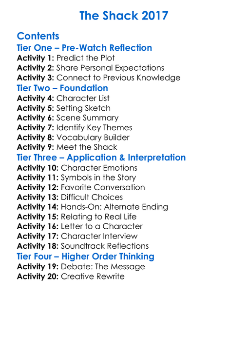 The Shack 2017 Worksheet Activity Booklet
