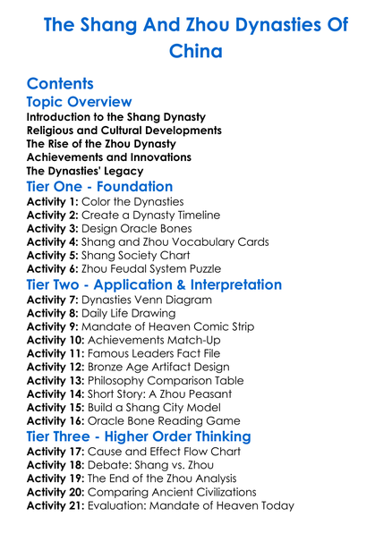 The Shang And Zhou Dynasties Of China Worksheet Activity Booklet