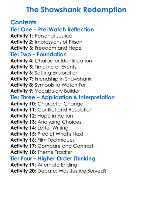 The Shawshank Redemption Worksheet Activity Booklet