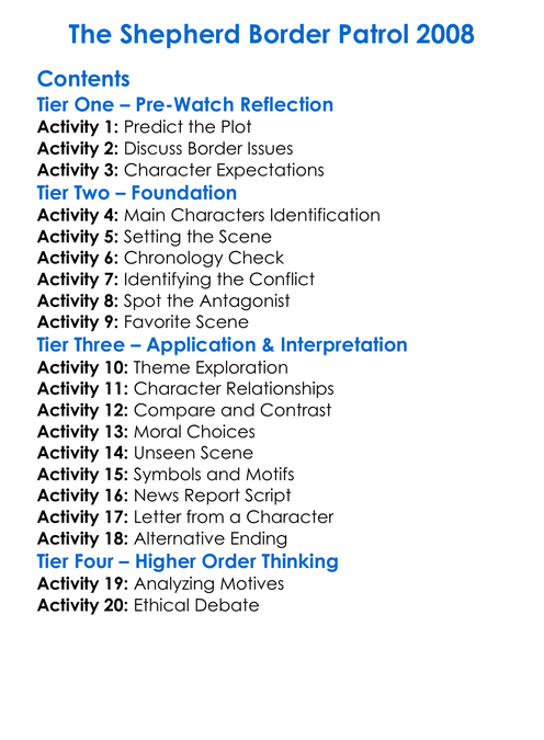 The Shepherd Border Patrol 2008 Worksheet Activity Booklet