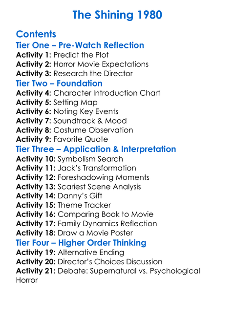 The Shining 1980 Worksheet Activity Booklet