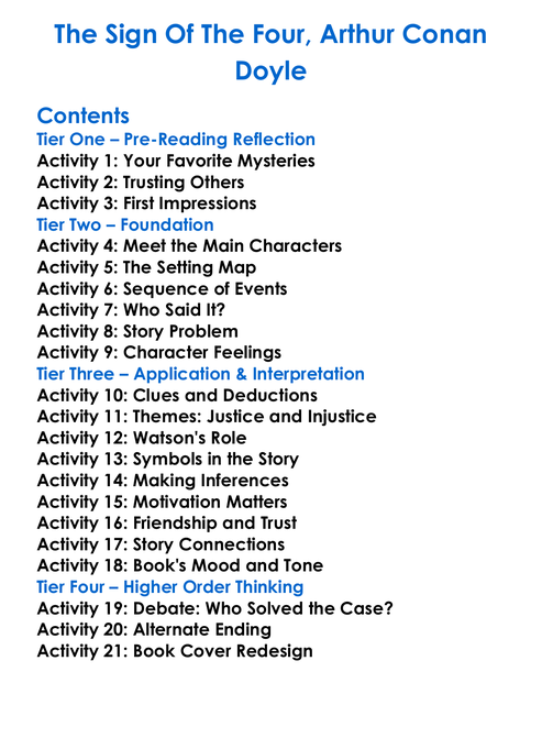 The Sign Of The Four Arthur Conan Doyle Worksheet Activity Booklet