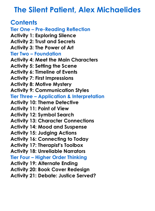 The Silent Patient Alex Michaelides Worksheet Activity Booklet
