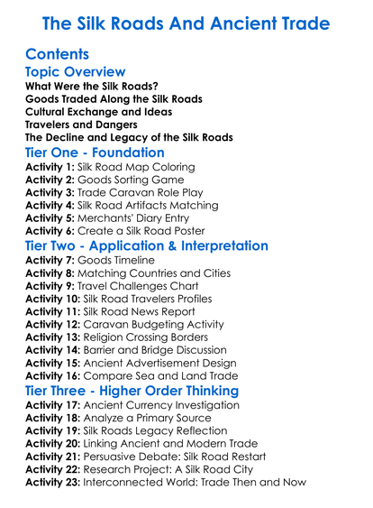 The Silk Roads And Ancient Trade Worksheet Activity Booklet