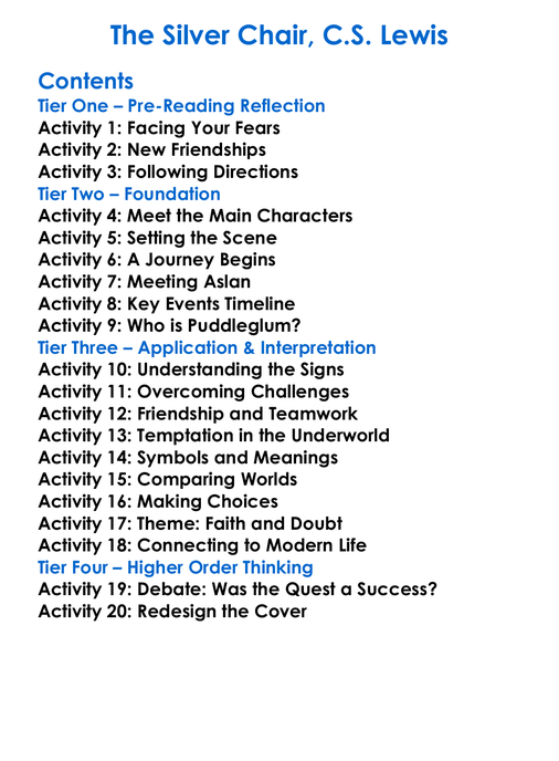 The Silver Chair Cs Lewis Worksheet Activity Booklet