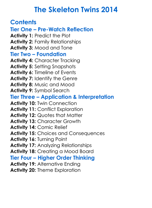The Skeleton Twins 2014 Worksheet Activity Booklet