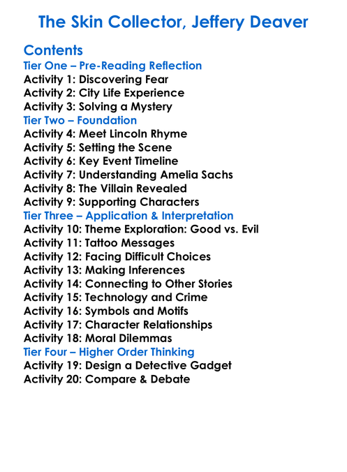The Skin Collector Jeffery Deaver Worksheet Activity Booklet