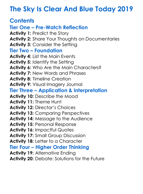 The Sky Is Clear And Blue Today 2019 Worksheet Activity Booklet