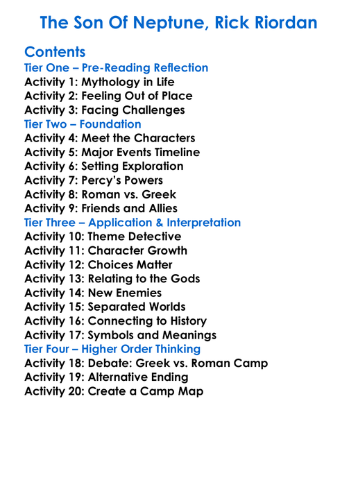 The Son Of Neptune Rick Riordan Worksheet Activity Booklet
