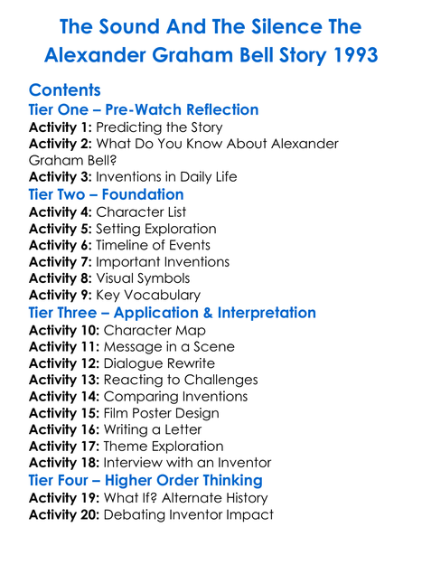 The Sound And The Silence The Alexander Graham Bell Story 1993 Worksheet Activity Booklet