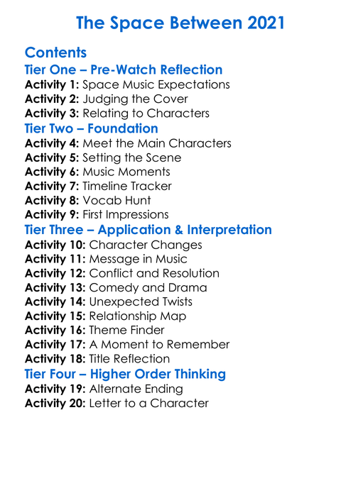 The Space Between 2021 Worksheet Activity Booklet