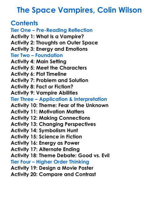 The Space Vampires Colin Wilson Worksheet Activity Booklet