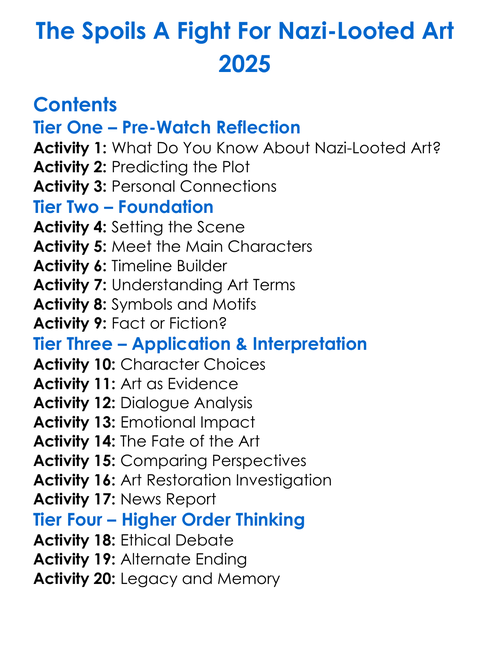 The Spoils A Fight For Nazi-Looted Art 2025 Worksheet Activity Booklet