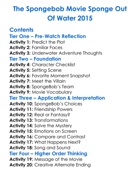The Spongebob Movie Sponge Out Of Water 2015 Worksheet Activity Booklet