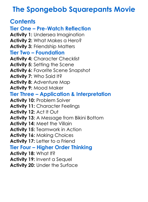 The Spongebob Squarepants Movie Worksheet Activity Booklet