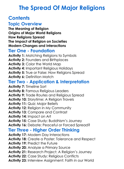 The Spread Of Major Religions Worksheet Activity Booklet