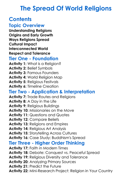 The Spread Of World Religions Worksheet Activity Booklet