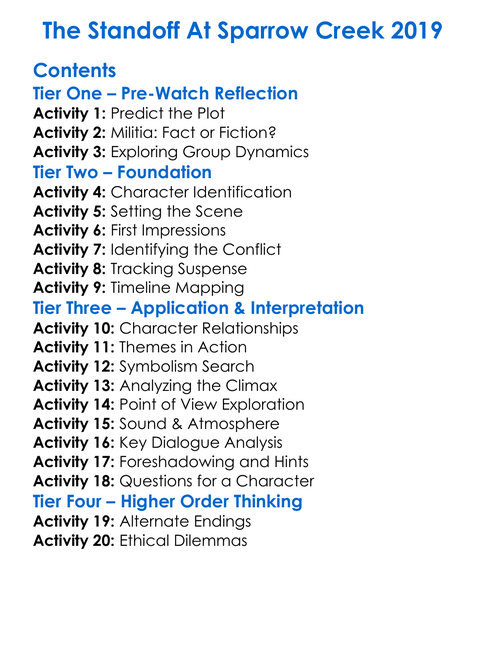 The Standoff At Sparrow Creek 2019 Worksheet Activity Booklet