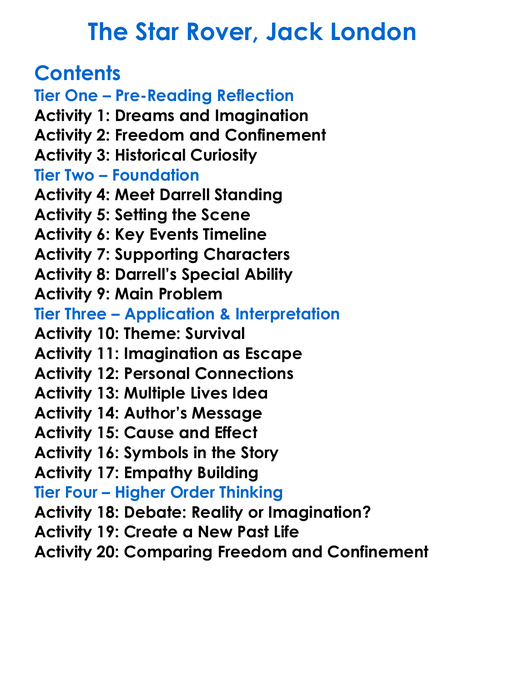 The Star Rover Jack London Worksheet Activity Booklet