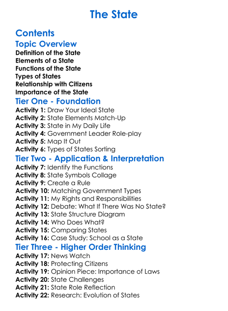 The State Worksheet Activity Booklet