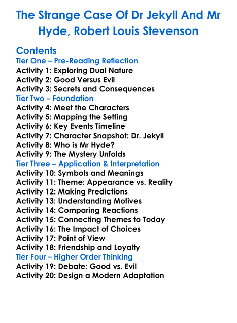 The Strange Case Of Dr Jekyll And Mr Hyde Robert Louis Stevenson Worksheet Activity Booklet