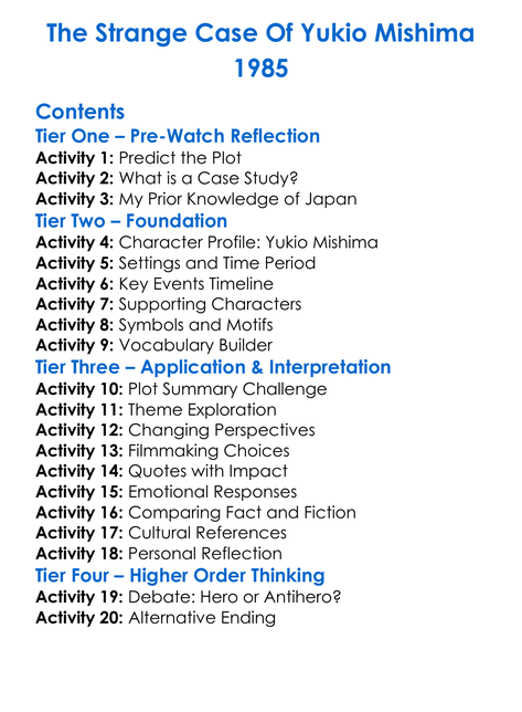 The Strange Case Of Yukio Mishima 1985 Worksheet Activity Booklet