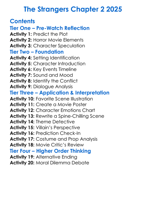 The Strangers Chapter 2 2025 Worksheet Activity Booklet
