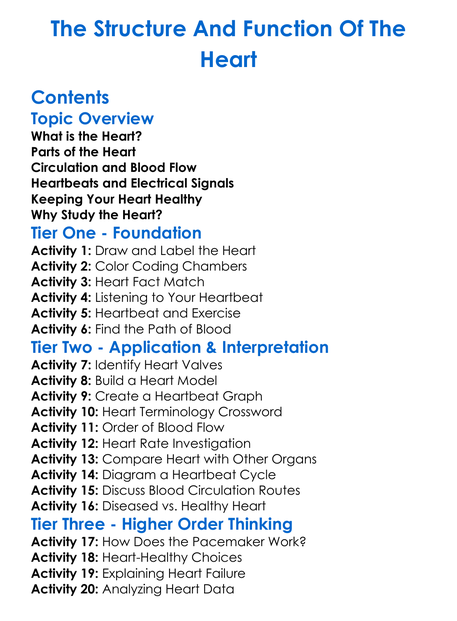 The Structure And Function Of The Heart Worksheet Activity Booklet