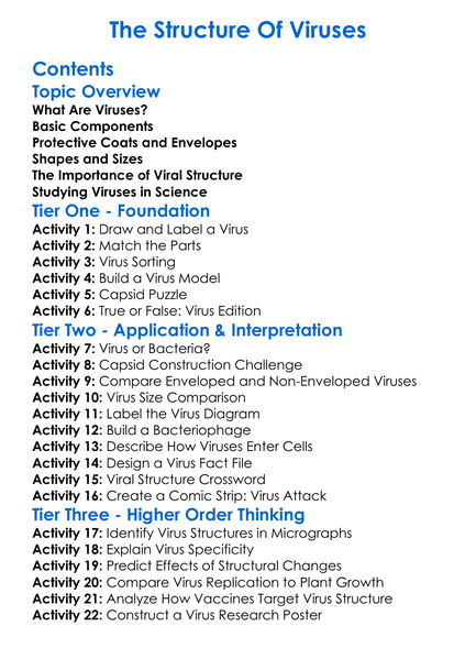 The Structure Of Viruses Worksheet Activity Booklet
