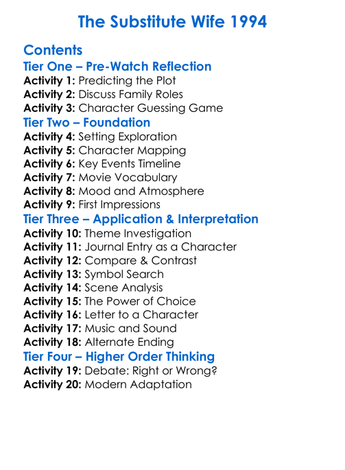 The Substitute Wife 1994 Worksheet Activity Booklet